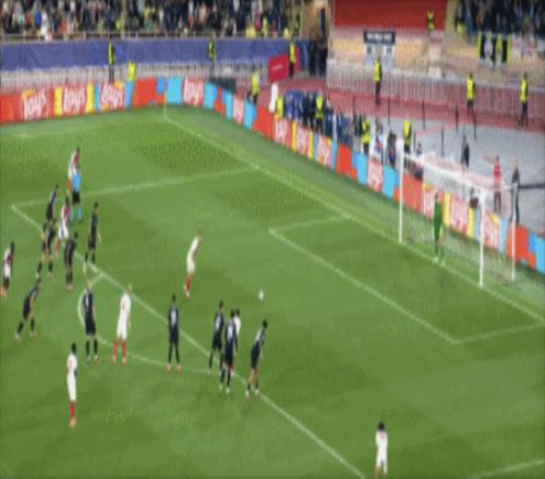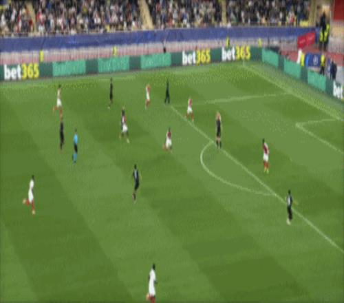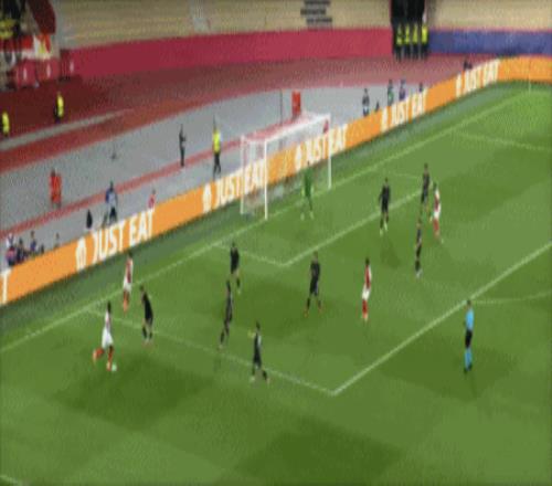 第18分钟,迪亚塔左路传球,特泽弧顶右脚远射轰入世界波,1-1!摩纳哥扳平。