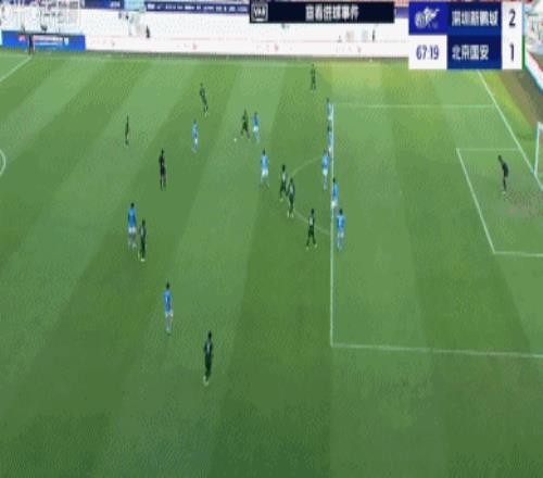 补时阶段北京国安前场右侧任意球机会,王刚禁区弧顶前抢到第2落点凌空扫射,皮球稍稍高出横梁。易边再战国安继续加强进攻,第66分钟,北京国安中路压上,张玉宁禁区弧顶前拿球摆脱2人包夹后横传右侧,张稀哲策应斜塞,何宇鹏跟进小禁区前沿横传中路,张玉宁跟进迎球直接推射,皮球直入网窝,北京国安1:2扳回一球。第89分钟,国安获得禁区弧顶左侧位置很好的任意球机会,张稀哲操刀主罚大力兜射,这球没有兜起来,被人墙挡了出来。错失这次机会后,国安未能再进球,客场1:2不敌深圳新鹏城,近5轮输了4场。