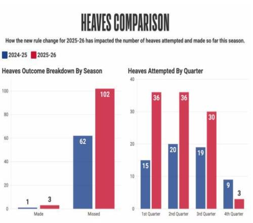 这一切,都源于2025-26赛季引入的一项新规则。联盟调整了对每节读秒阶段那些“绝望出手”的统计方式,希望能让这些投篮真正被当回事儿。而一个意想不到的结果是:球迷们现在更愿意留在座位上,直到每节比赛真正结束——生怕一不留神,就错过了那些可能点燃全场、甚至扭转战局的神奇压哨球。