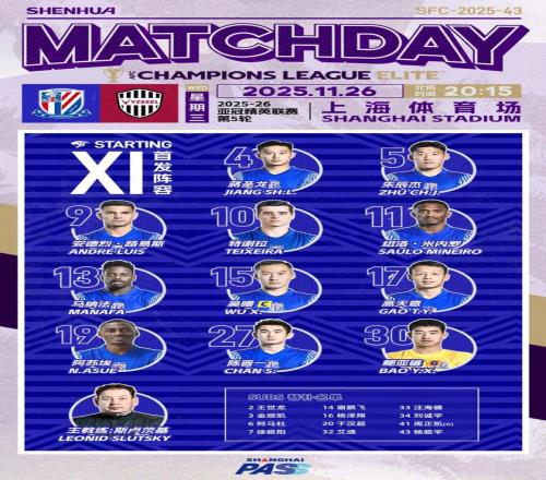 11月26日,2025-26赛季亚冠精英联赛东亚区第5轮,上海申花队坐镇主场迎战神户胜利船。在本场比赛中,申花队3球被吹,路易斯点射被扑,最终0-2不敌神户胜利船。