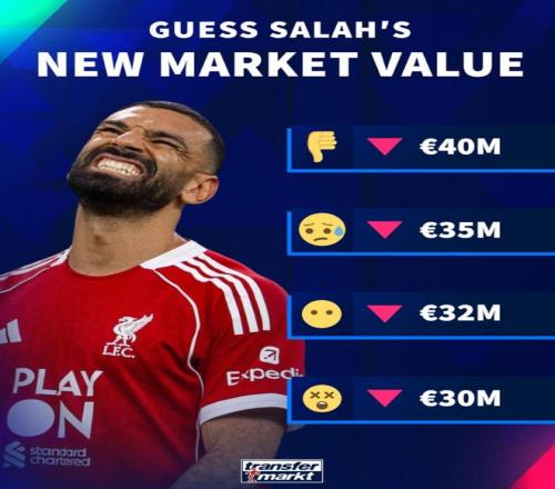 德转将在12月9日对英超球员的身价进行更新。今日德转预热萨拉赫身价下跌,球员最高4000万欧,最低剩3000万欧。