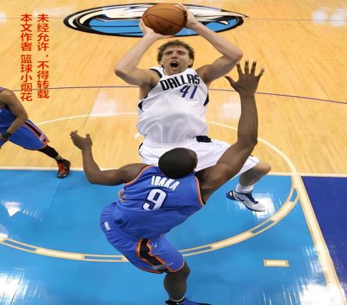 诺维斯基在这场比赛中,充分证明了什么叫进攻的艺术,既然你不夹击我,那么你就要接受我的惩罚!为了进攻更加高效,诺维斯基放弃了三分投射,全场一次三分都没投,全部冲杀雷霆篮下,突投结合再加上招牌的金鸡独立,完全无解,把肉盾帕金斯,盖帽王伊巴卡,队魂科林森全都收拾得灰头土脸,全场15投竟然12中,24罚全中,狂轰48分!率领小牛拿下开门红!