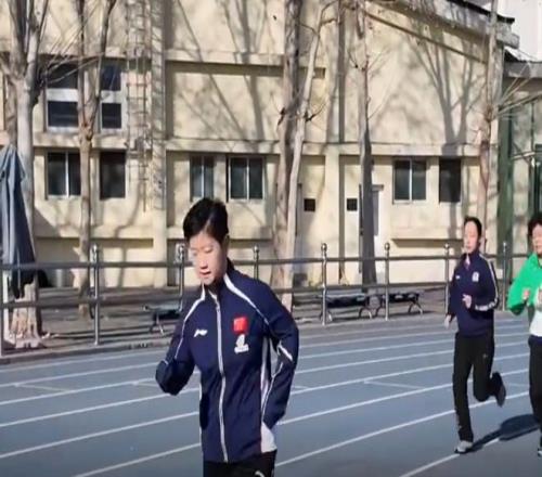 流传出来的国乒冬训视频中,孙颖莎在进行长跑,她跑在的队伍靠前的位置。体能测试难不倒孙颖莎。