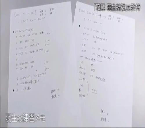 日本电视台曾跟拍羽生结弦的训练和生活,制作了一部纪录片《“职业羽生结弦”的自尊》。羽生结弦每天比较固定的是冰上训练3.5小时,陆地训练1.5小时。此外他有一本详细的训练日志,记录每天训练的具体内容,比如在一周两次的爆发力训练中,他要进行7组由四周跳和三周跳构成的训练。训练结束后,他还要给身体、疲劳、脚踝、腰的状态及整体完成度打分。